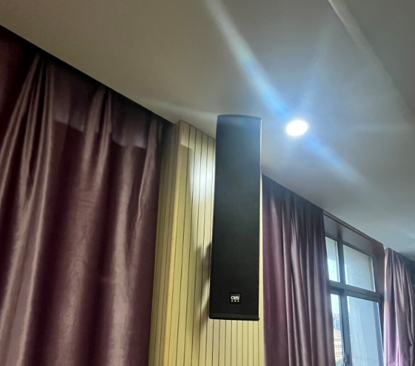 改造前,會議室內(nèi)發(fā)言人聲模糊,臺式電腦畫面經(jīng)常斷連,話筒拾音效果不佳,調(diào)音臺元器件老化有電流。我司通過專業(yè)設(shè)備檢測發(fā)現(xiàn)現(xiàn)場混響較大,且原設(shè)計(jì)采用全頻音箱人聲突出不明顯,我司為其更換陣列音柱,音質(zhì)清晰外觀與現(xiàn)場裝修搭配合適;采用機(jī)架式調(diào)音臺,設(shè)備上機(jī)柜使整體看起來更整潔;采用無線話筒和無線投屏,解決話筒拾音不佳、電腦連接不穩(wěn)的情況。